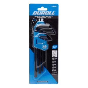 El Juego de Llaves Allen CR-V 9 Piezas Duroll es un set confiable y versátil para todo tipo de trabajos de precisión.